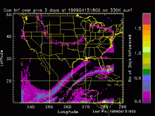 Land and ocean convective influence at 330K