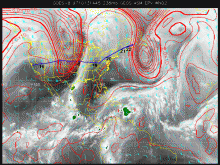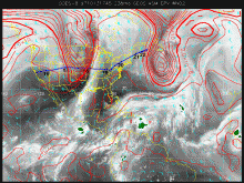 GOES-8 ch3(WV) overlain with UT,EPV,winds;large area view